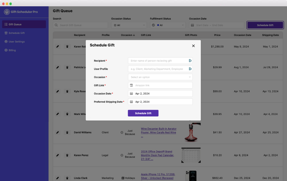 "Automated Gifting Made Easy" | GiftSchedulerPro.com | All Rights Reserved, 2024.